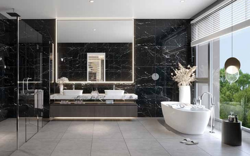 : Porcelain Wall Tiles : Approx. 1500mm height Porcelain Wall Tiles / Plaster & Paint : Plaster & Paint