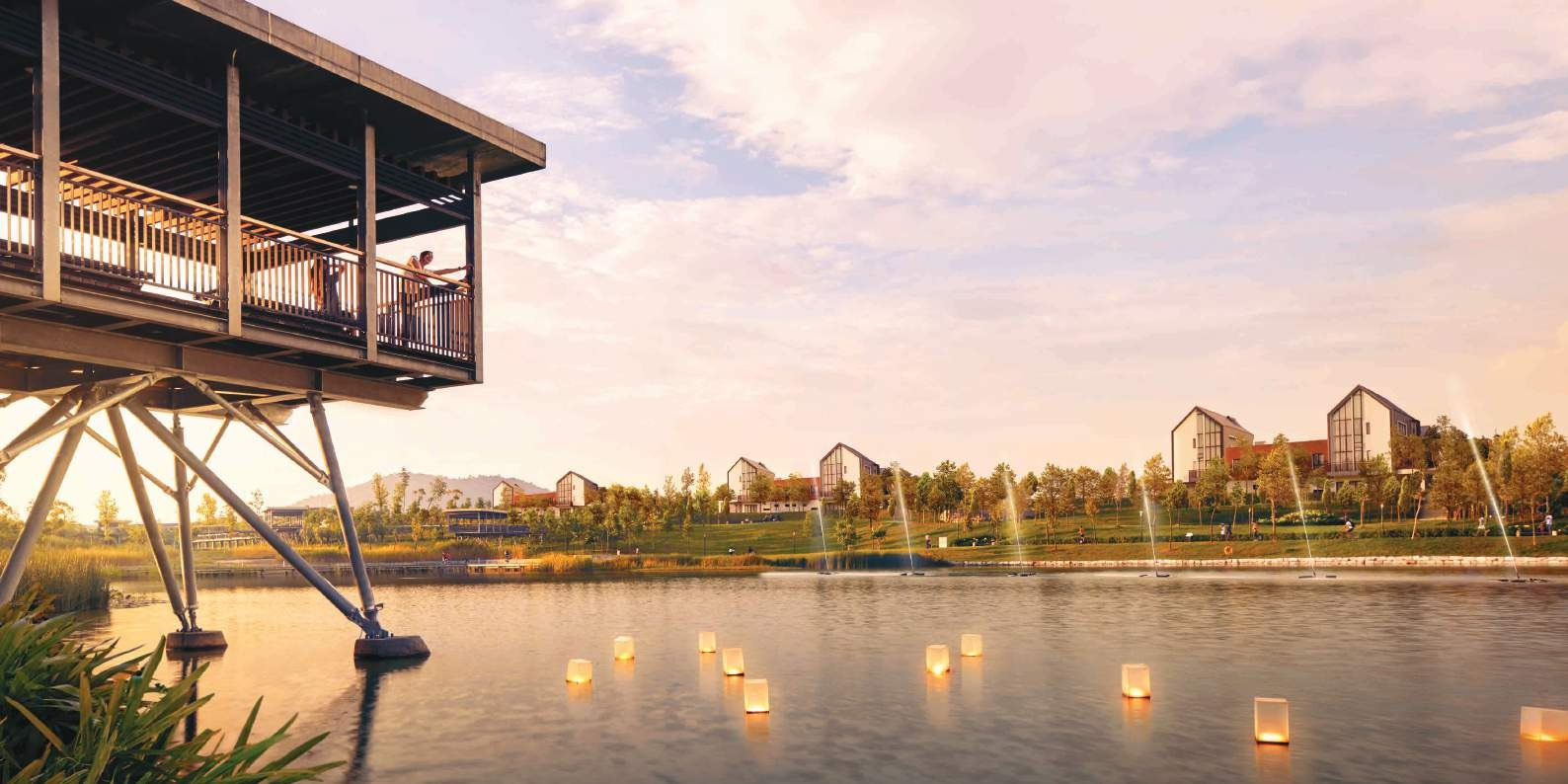 Live perched above, overlooking a breathtaking view of the central lake. watch as the water sparkle with each sunrise veiled by hills over the horizon.