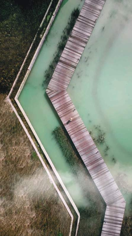 Walk along the Wetlands Boardwalk or revel in the stunning view of the glistening emerald lake at the Lookout Point.